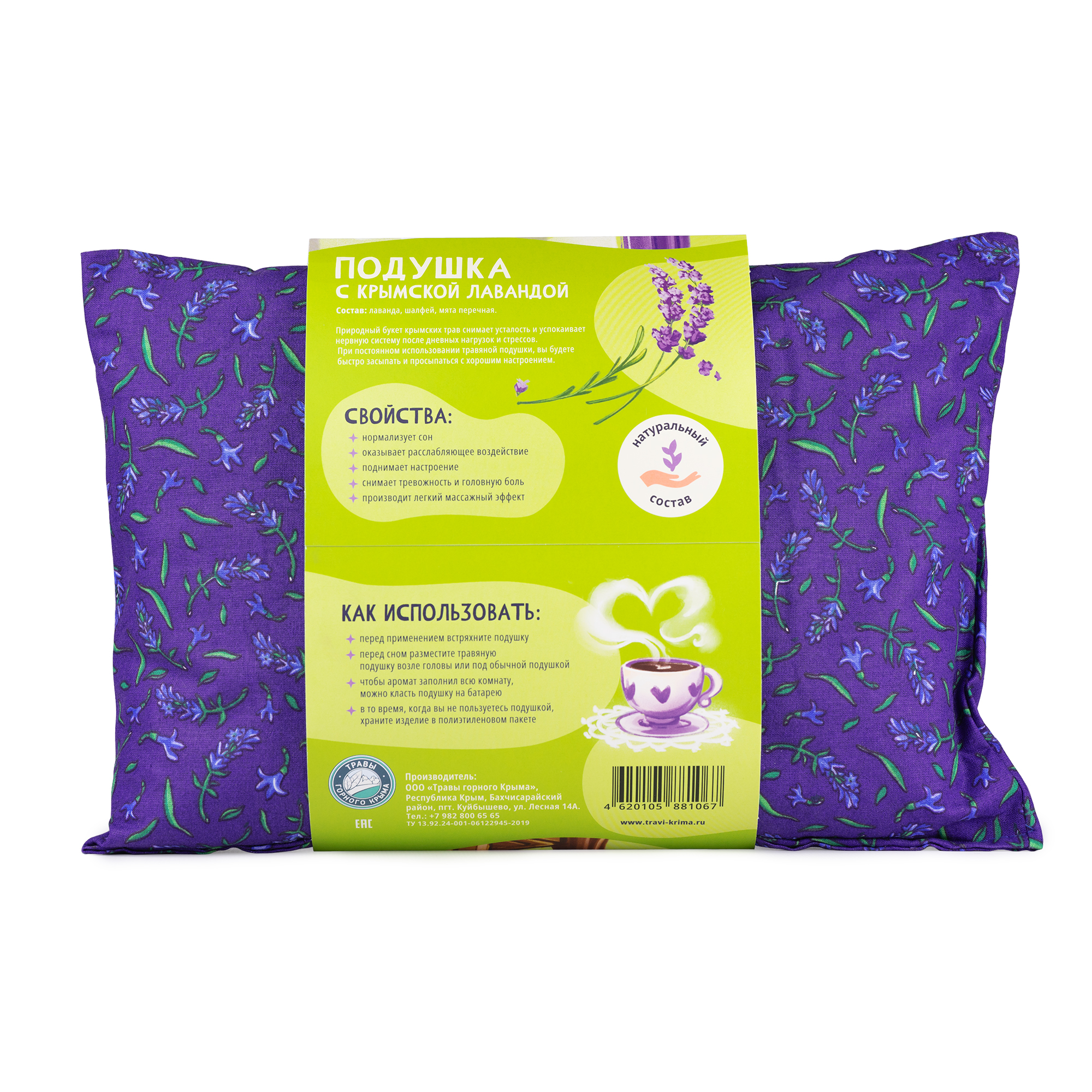 Подушка скрымской лавандой - эффектный и полезный подарок близкому человеку, родственнику или другу. Такой предмет интерьера будет поднимать настроение каждый день, а аромат крымских трав и цветов будет успокаивать. Чехол подушечки изготовлен из бязи и наполнен полезными арома травками из Крыма. Размер 35*25 см. Маленькая подушка заключена в яркую обечайку с авторским дизайном.